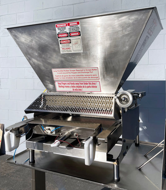 Hinds-Bock (5P-08WT) 5-Piston Tabletop Automatic Bakery Muffin Batter Depositor On Automatic Adjustable Height Stainless Steel Table
